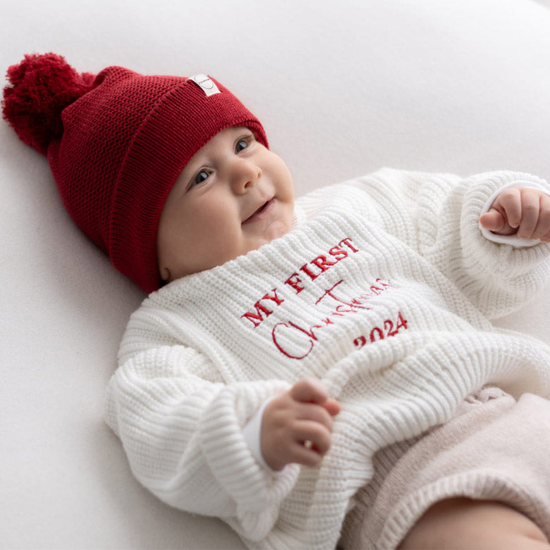 Wrap your little one in timeless style with our Christmas Chunky Knit Sweater. Available in three elegant colours: Maroon Red, Beige and Pearl. Crafted from soft, breathable cotton for cosy comfort and a rich, festive touch all season long. They’re the perfect match to our Shorts, Hats & Bows collection for those who love a co-ordinated look, even more fun to mix and match colours.