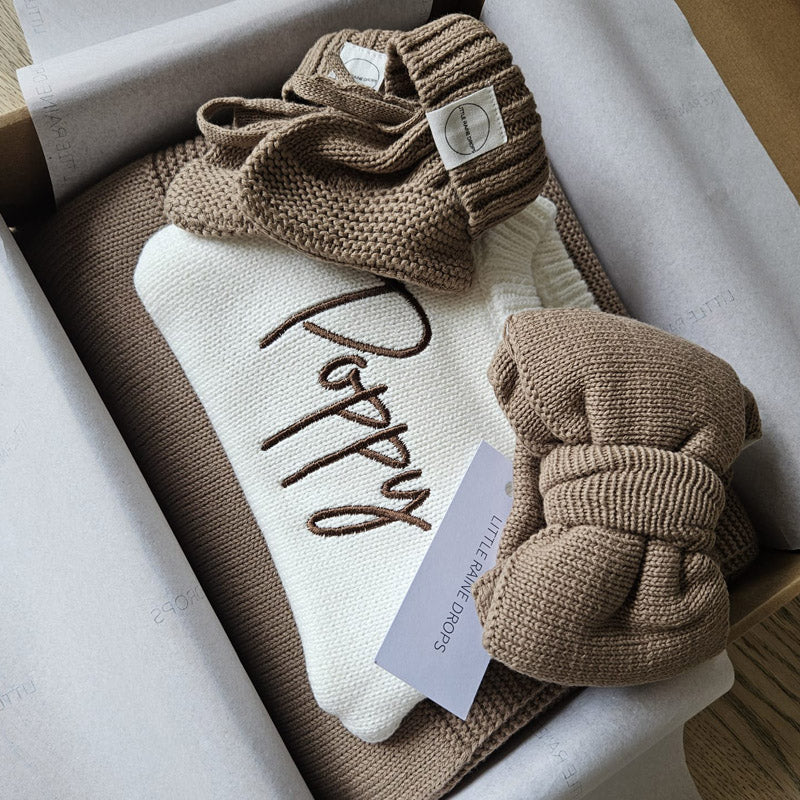 Regular price €90,00Create the perfect bundle by matching our ever popular Personalised Cotton Knit Blanket with our Romper & Bootie Announcement set.