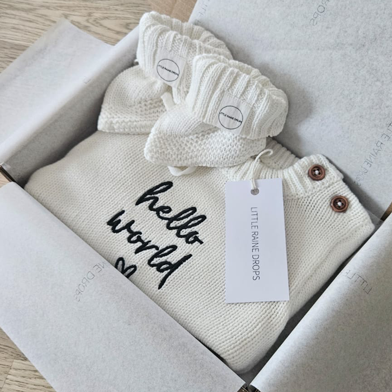 Explore The Bundle Loft to discover beautifully curated sets, including our Personalised Cotton Blanket & Romper for €90, as well as our Announcement Bundles with the option to add matching accessories such as a hat and/or head bow.