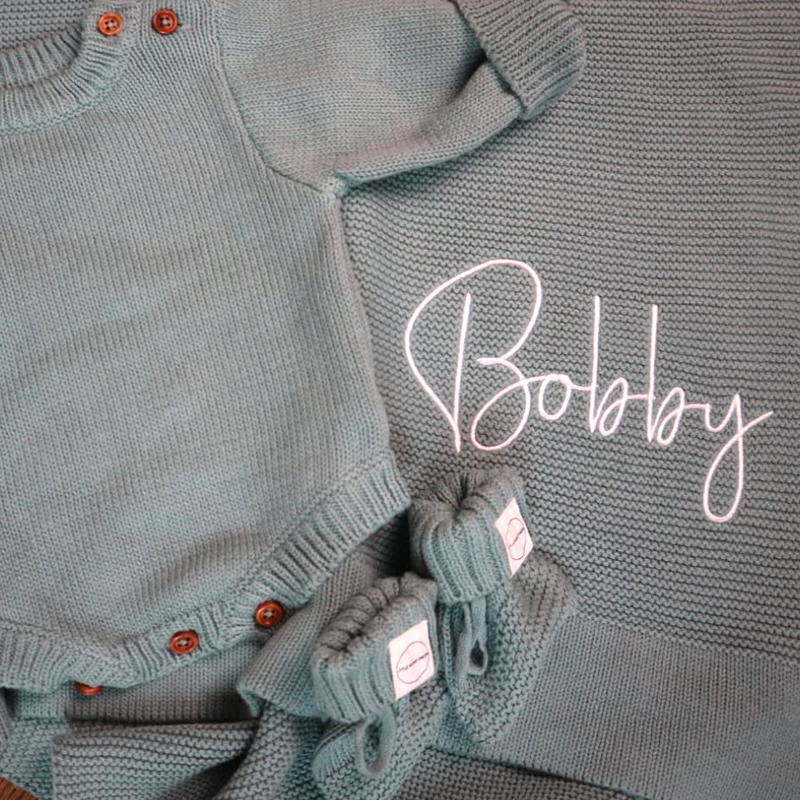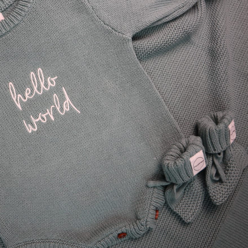 Introducing our Sage Romper & Bootie announcement set, beautifully crafted from the softest 100% cotton. The set shares the much loved quality of our hugely popular cotton knit blanket collection, inviting a perfect match for cosy comfort and aesthetics.