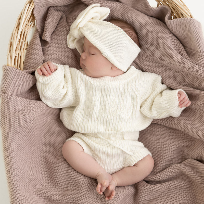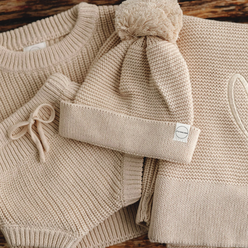 Create your own Personalised Cosy Bundle of your choice with our matching Chunky Sweater's, Cotton Knit Blanket's, Bunny Beanies & Cotton Knit Shorts