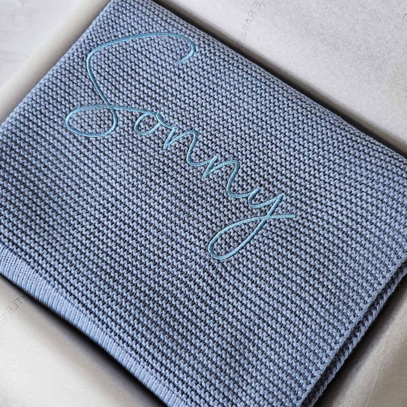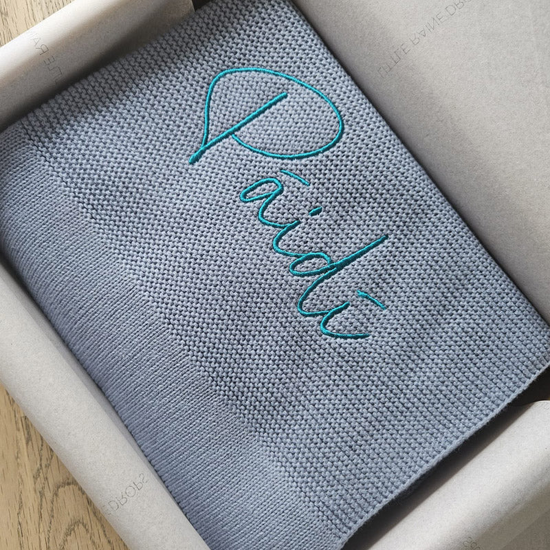 Name will be displayed on bottom right of the blanket with approx 4" font (font size may vary slightly due to length of name)