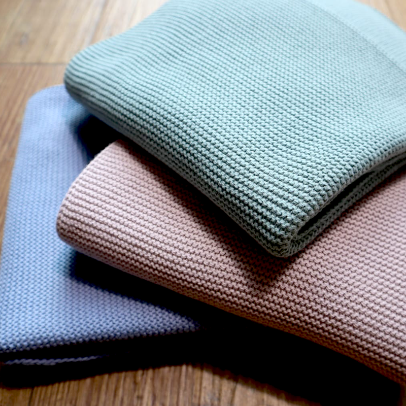 A beautiful new addition to our cotton knit blanket range. This gorgeous shade brings a fresh, modern touch to any nursery. Soft, cosy and gentle on delicate skin, it’s a timeless choice for both boys and girls and a lovely base for personalised embroidery.