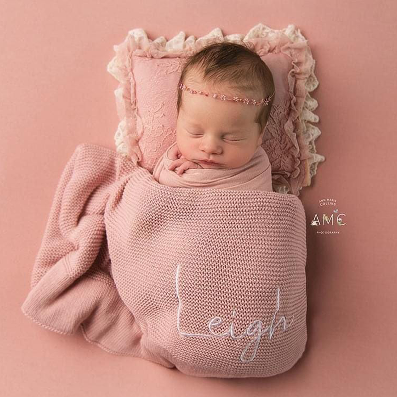Personalised Cotton Knit Baby Blanket – Dusky Pink