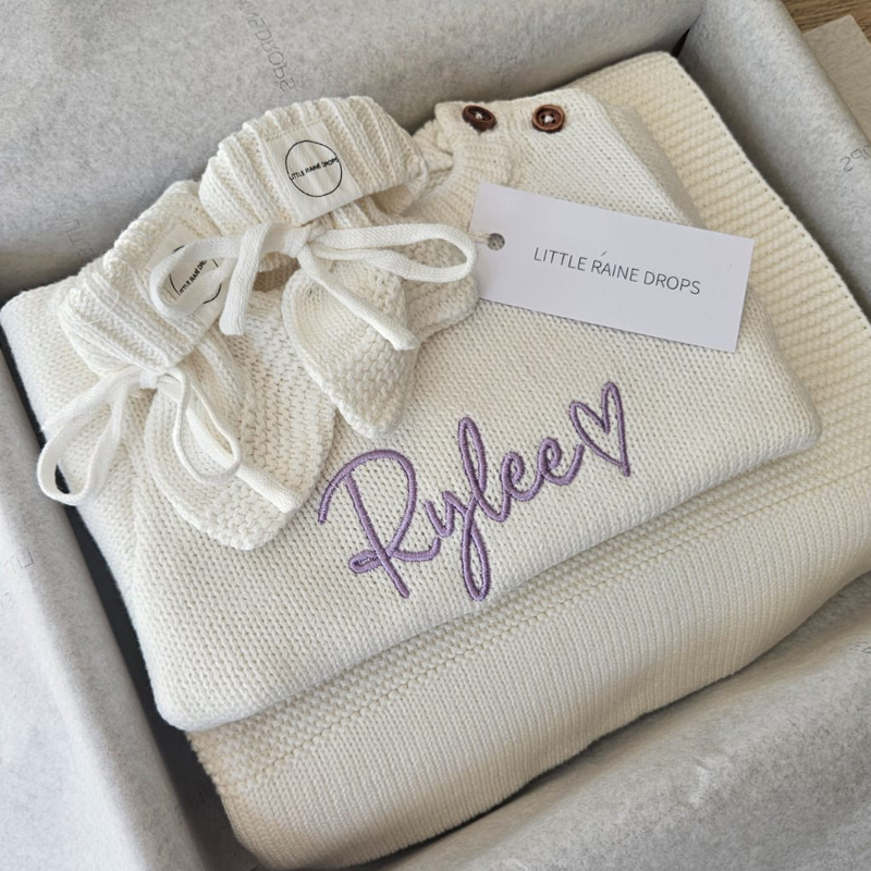 Regular price €90,00Create the perfect bundle by matching our ever popular Personalised Cotton Knit Blanket with our Romper & Bootie Announcement set.