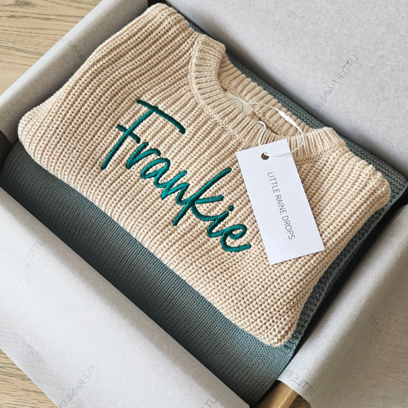 Regular price €85,00Our Chunky Knit Sweater & Blanket Bundle pairs two everyday essentials in soft cotton knit, designed for comfort from newborn through early childhood. Finished with personalised embroidery and available in a choice of calming neutral colours. This coordinated set is breathable, gentle on delicate skin and made to be used and loved daily. A timeless choice for baby gifting, or cosy moments at home.