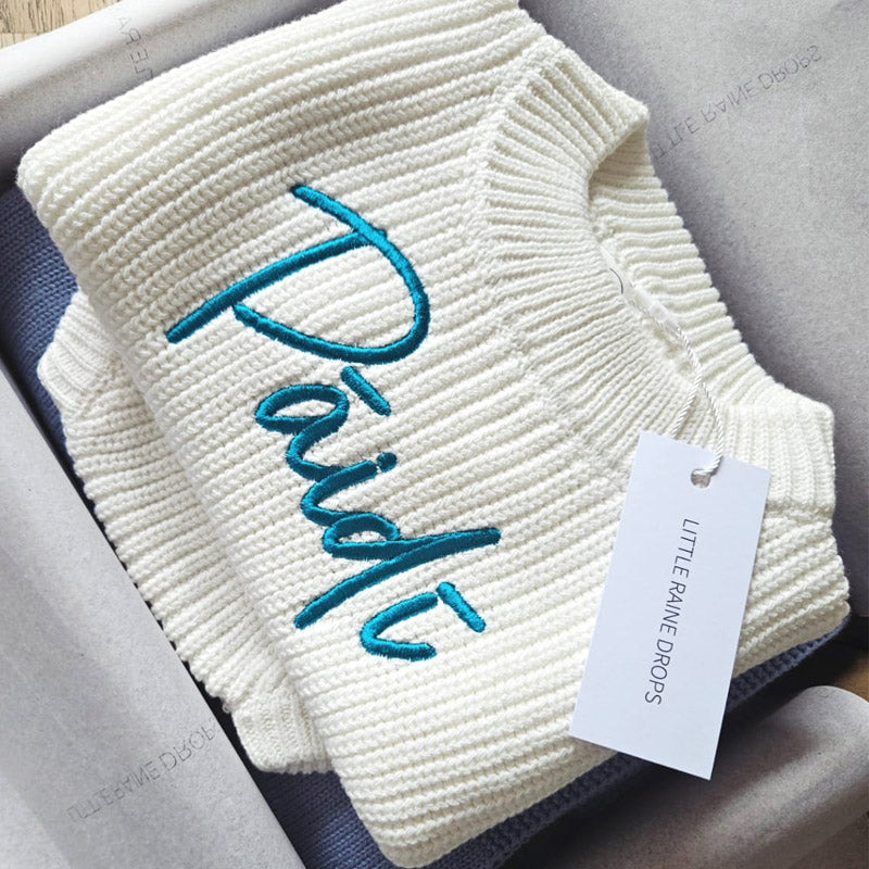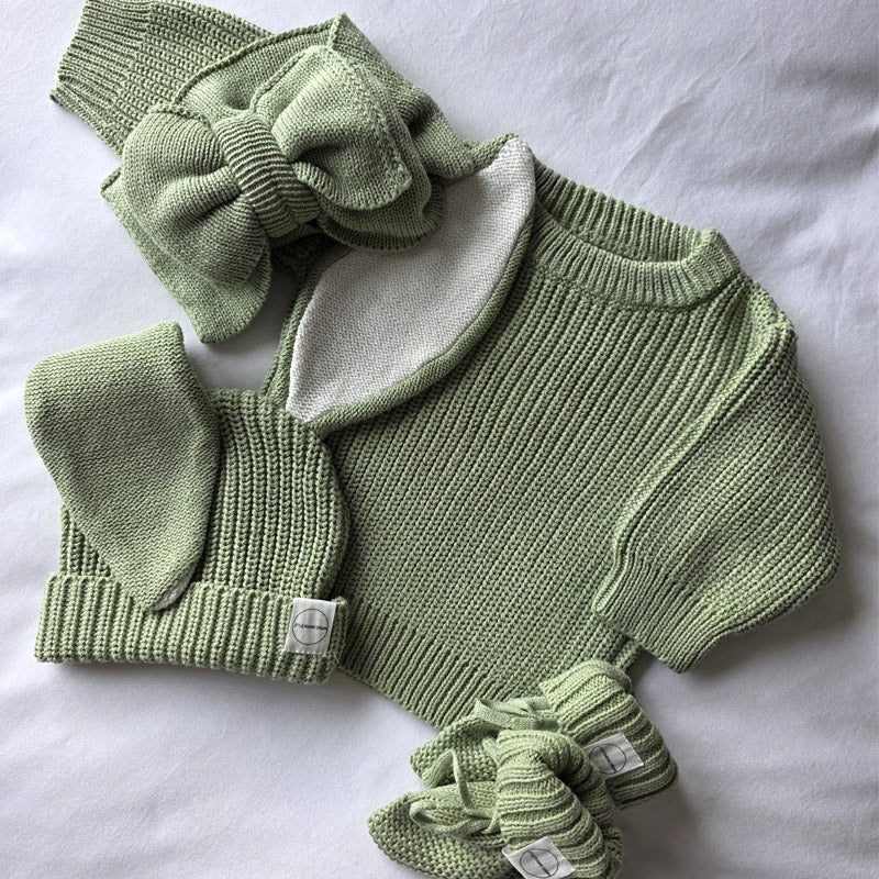 Get our personalised chunky knit sweater, cosy cotton shorts and bunny beanie bundle