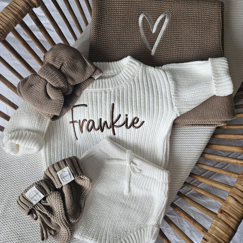 Regular price €100,00Our chunky knit sweater and shorts, now paired with our signature personalised blanket. Thoughtfully made for comfort, calm, and everyday cuddles.
